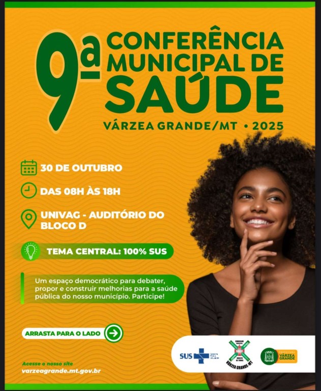 A Conferência é um grande momento de diálogo, escuta e construção coletiva. Propostas apresentadas durante todo o dia seguirão para plenária final e levadas à discussão estadual e nacional Várzea Grande realiza amanhã, quinta-feira (30), a 9ª Conferência Municipal de Saúde, com o tema “100% SUS”. O evento é promovido pelo Conselho Municipal de Saúde […]